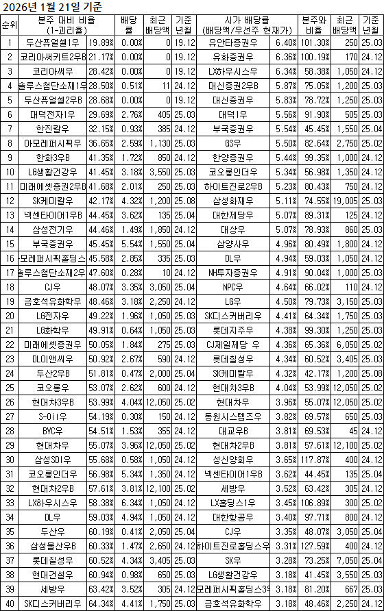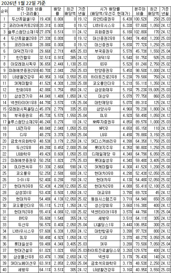 또 일부 본주/우선주가 조사에서 아예 제외되었을 수 있습니다. 빠진 항목이 있는 것 같으면 댓글 부탁드립니다.