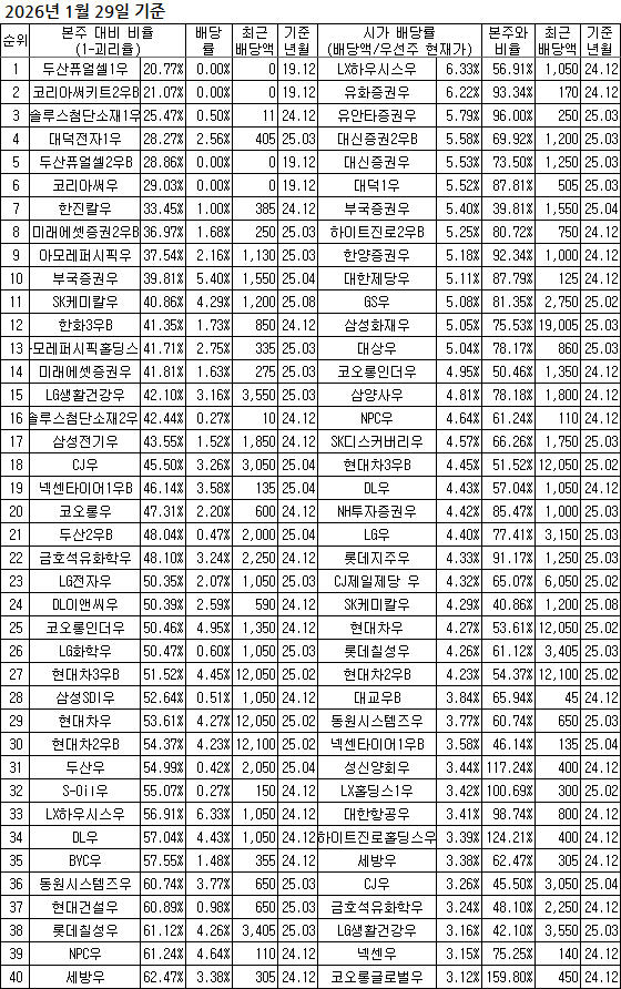 또 일부 본주/우선주가 조사에서 아예 제외되었을 수 있습니다. 빠진 항목이 있는 것 같으면 댓글 부탁드립니다.